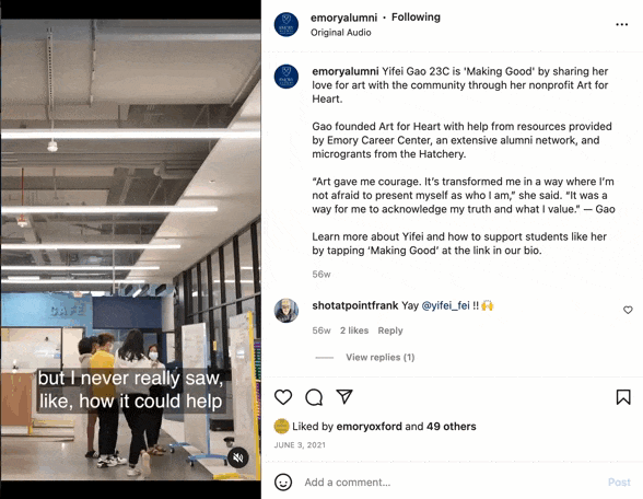 Social integration was an obvious choice with the beautiful, engaging assets created with this digital story. We asked the social media manager to lean into the intimate feel of the storytelling via video. Each story received their own feature in various platforms including LinkedIn, Facebook, and Instagram.